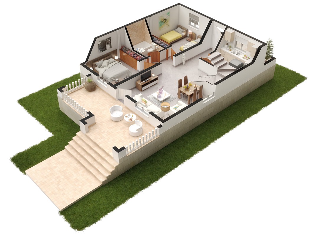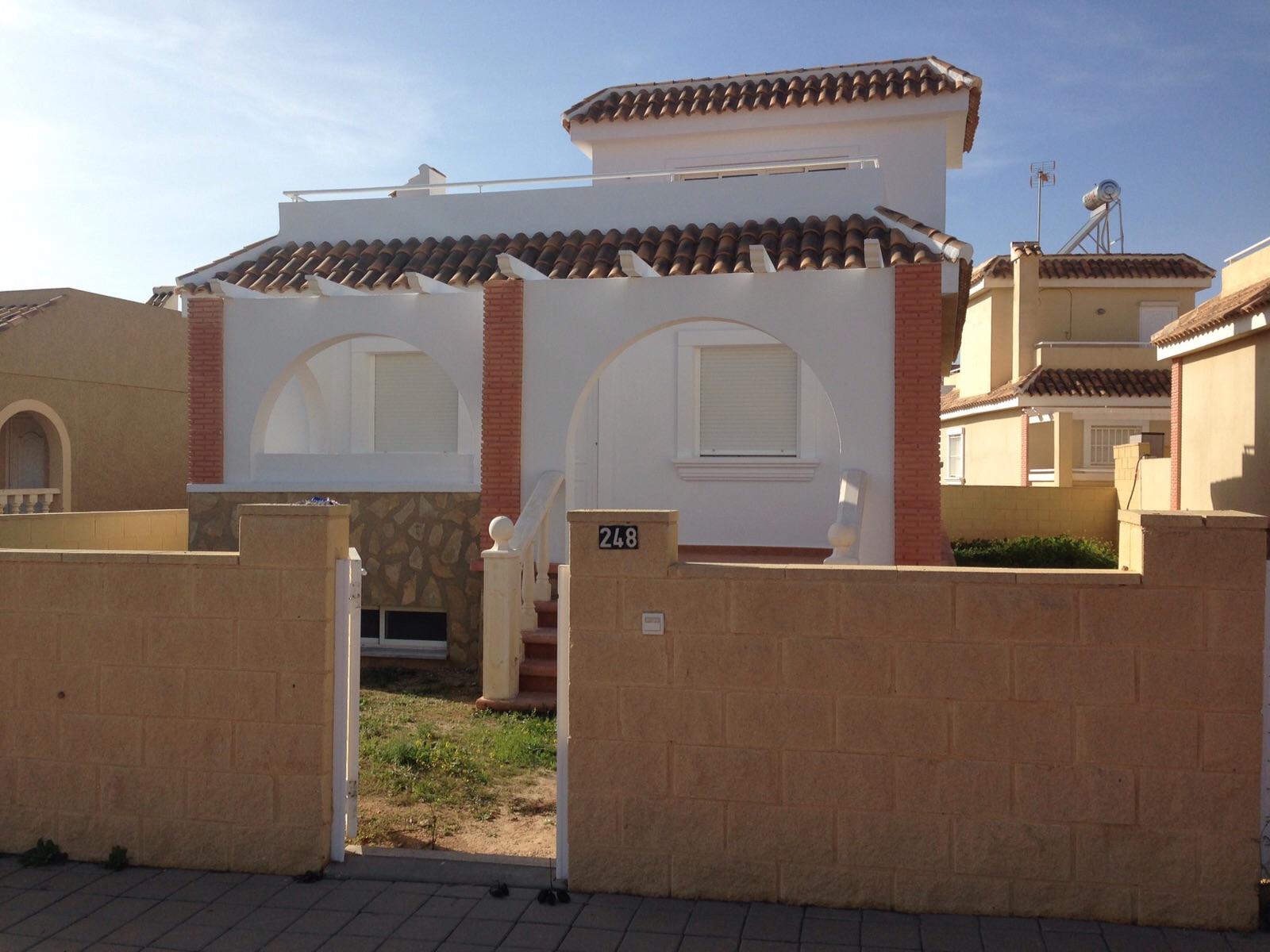 Chalet independiente de unos setenta y seis metros cuadrados, situado en la localidad Murciana de Balsicas, con dos dormitorios y un cuarto de baño completo, dispone de un solárium con treinta y siete metros cuadrados y una terraza frontal situada en la planta baja de treinta y tres metros cuadrados, un sótano de noventa metros cuadrados, una parcela de unos doscientos cincuenta metros cuadrados, muebles opcionales y sitio para una piscina. Campo de Golf muy cerca de la vivienda, a unos doscientos metros de distancia, a quince kilómetros de la playa y del aeropuerto.